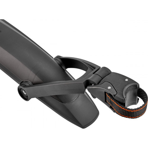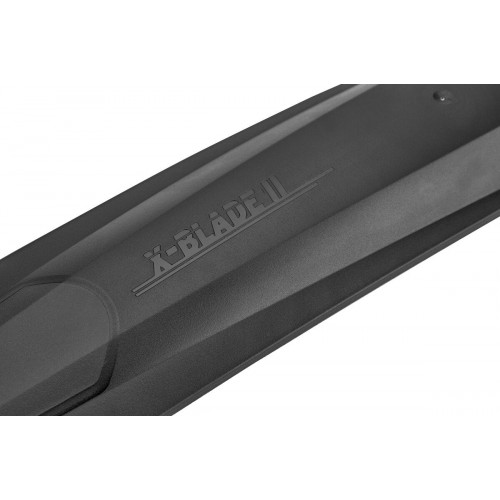 Het hoogwaardige X-BLADE twee-componenten MTB-spatbord biedt een optimale spatbescherming dankzij de verstelbare voorspoiler en de extra lange achterspoiler. De spoiler van zachtere kunststof dient daarbij als zijbescherming bij het op- en afstappen.
