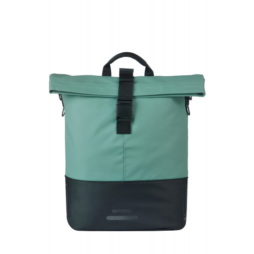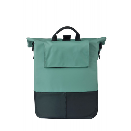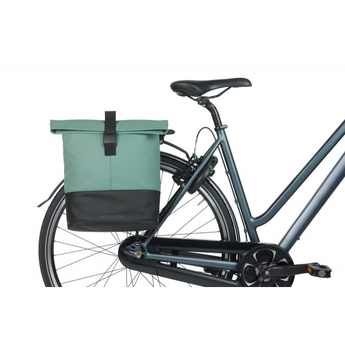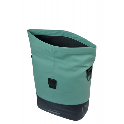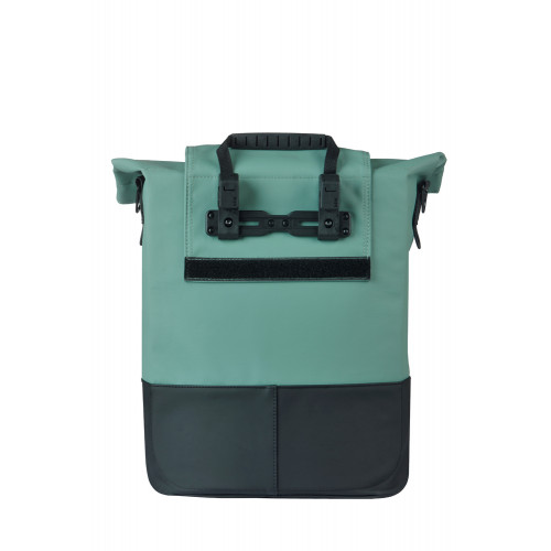 Shoppertas, MIK Hooks, 14-16L, gerecycled PET – vegan leather, waterkerende vouwsluiting met gesp, binnenritsvak, incl. afneembare schouderband, bevestigingsmogelijkheid voor LED, hengsels, reflectie, zilvergroen/zwart