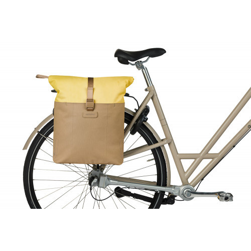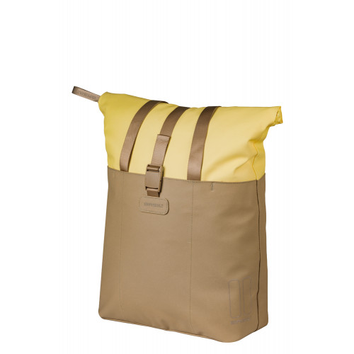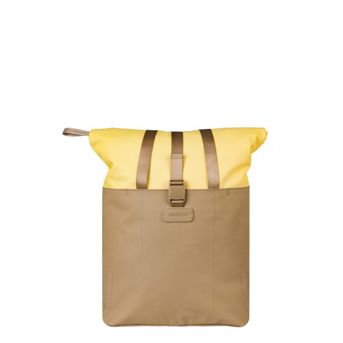 Shoppertas, MIK Hooks, 15-20L, gerecycled PET, hoofdvak waterdicht, roltopsluiting met gesp, binnenritsvak, buitenvak, laptopvak 14 inch, schouderband, reflectie, reparatierits, zand/geel