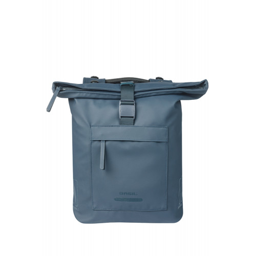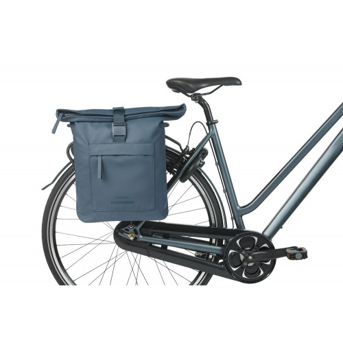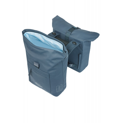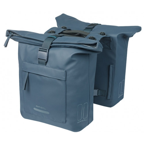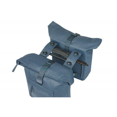 Dubbele fietstas, MIK systeemdragers/dragerplaten, incl. voorgemont. MIK Adapterplate 2.0 (70173), 41L, gerecycled PET, waterdicht hoofdvak, waterkerende vouwsluiting met gesp, buitenvakken, geschikt voor Basil afstandhouder, reflectie, marineblauw