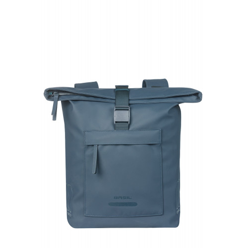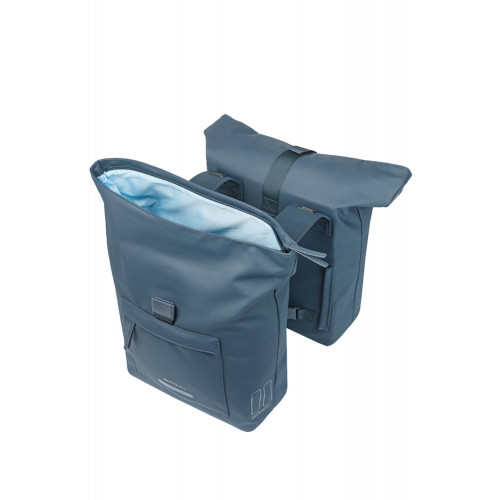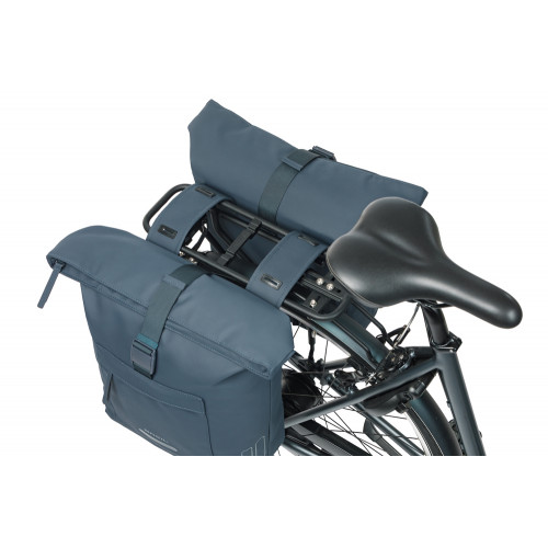 Dubbele fietstas, Universal Bridge (geschikt voor MIK en Racktime platen), 41L, gerecycled PET, waterdicht hoofdvak, waterkerende vouwsluiting met gesp, buitenvak, geschikt voor Basil afstandhouder, reflectie, marineblauw