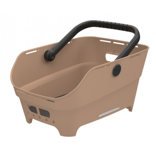 Achtermand, MultiSystem NX. Geschikt voor adapterplaten MIK,RT,AVS,UK,IR,ML,CM (niet inbegrepen), 46×35×25 cm, 1,5 kg, gerecycled kunststof, afgeschuind, in lengterichting op bagagedrager, handgreep (zwart), afneembare bagageriem, antislipmat, refl., zand