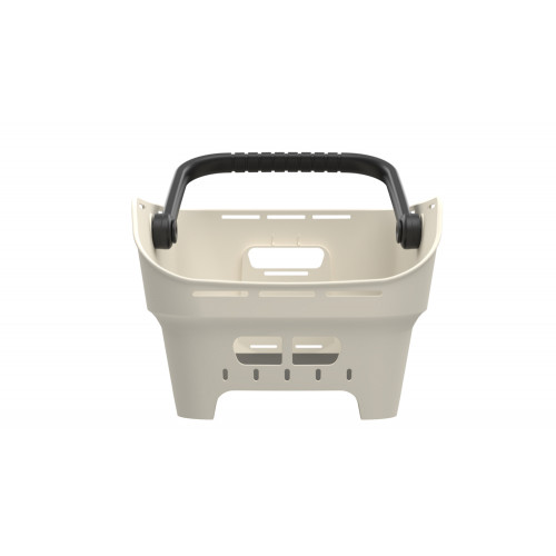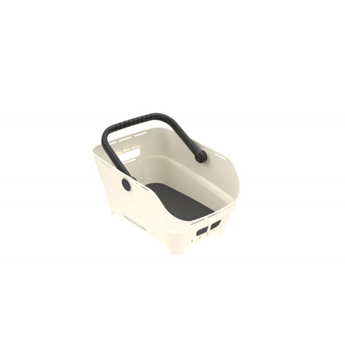 Achtermand, MultiSystem NX. Geschikt voor adapterplaten MIK,RT,AVS,UK,IR,ML,CM (niet inbegrepen), 46×35×25 cm, 1,5 kg, gerecycled kunststof, afgeschuind, in lengterichting op bagagedrager, handgreep (zwart), afneembare bagageriem, antislipmat, refl., gebr. wit