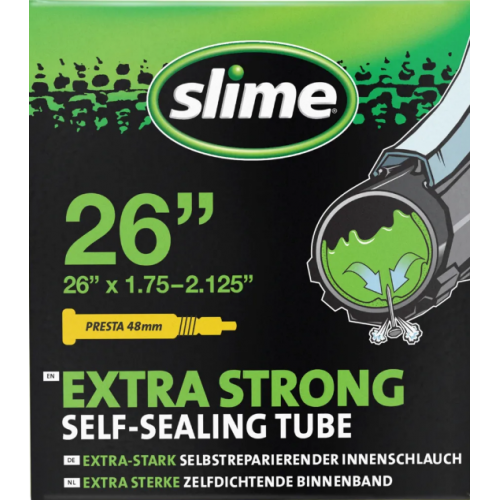 De Slime zelfdichtende binnenband bevat een kleine hoeveelheid Slime. Zo gauw er een gaatje in de band komt (tot 3 mm) wordt deze direct gevuld met rubberdeeltjes waardoor je gewoon door kunt fietsen! Geschikt voor fietsen, kruiwagens, rolstoelen, kinderwagens etc. Niet giftig en niet ontvlambaar. Werkt tot 2 jaar.