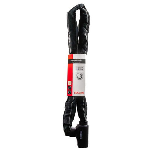 Bescherm uw waardevolle (sportieve) fiets of e-bike met de stevige, ART1 gekeurde Simson Ninety. De Ninety voldoet aan strenge diefstalpreventienormen, is gemaakt van schakel van 7mm gehard staal en slijtvast nylon hoes en uitgerust met een betrouwbare sluiting voor een zeer goede beveiliging. Het slot heeft een Simson Security Level van 11 (van 15) en is vanwege zijn lengte ideaal ook geschikt voor gebruik bij lichtgewicht fietsen.