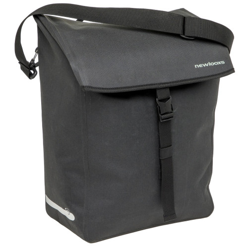 De New Looxs Hamar Single is een volledig waterdichte enkele fietstas en schoudertas in één, gemaakt van gerecycled polyester. Ideaal voor elektrische fietsen en voorzien van New Looxs haken voor stevige bevestiging op de bagagedrager. De tas heeft een extra ritsvak, reflectie aan beide zijden voor extra zichtbaarheid, en een afneembare, verstelbare schouderband. Dankzij de kliksluiting is hij eenvoudig in gebruik. Een duurzame en praktische keuze voor dagelijks woon-werkverkeer of fietstochten.