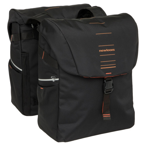 De New Looxs Vigo Double is een dubbele fietstas van waterafstotend polyester, perfect voor elektrische fietsen. Dankzij de bevestiging met riempjes past de tas op vrijwel elke bagagedrager. De Vigo Double heeft een ruim hoofdvak en drie extra vakken voor optimale opbergruimte. Reflectie aan beide zijden zorgt voor extra veiligheid. De tas sluit met een stevige kliksluiting en wordt geleverd met een regenhoes voor volledige waterdichtheid. Ook te gebruiken met een afstandhouder (niet inbegrepen).