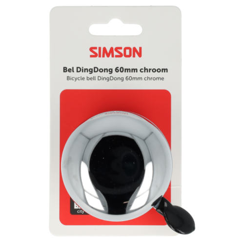 De Simson Bel DingDong Medium chroom heeft een tijdloos design en onmiskenbare Ding Dong klank. De bel heeft een chroom kleur en een medium uitvoering van 60mm. Deze fietsbel past op vrijwel iedere fiets en is te bevestigen met behulp van een schroevendraaier.