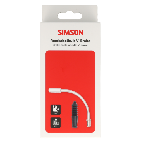 De Simson Remkabelbuis V-Brake verbindt de remkabel en het V-brake remsysteem in een hoek van 90° met elkaar. Hierdoor wordt de remkracht correct overgebracht op het V-Brake remsysteem.