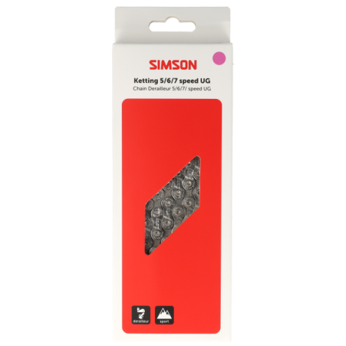 De Simson Ketting Derailleur 5/6/7 is een kwalitatief hoogwaardige fietsketting geschikt voor fietsen met 5, 6 of 7 (UG) derailleurversnellingen. Deze ketting heeft 116 schakels en een maat van 1/2"x 3/32".