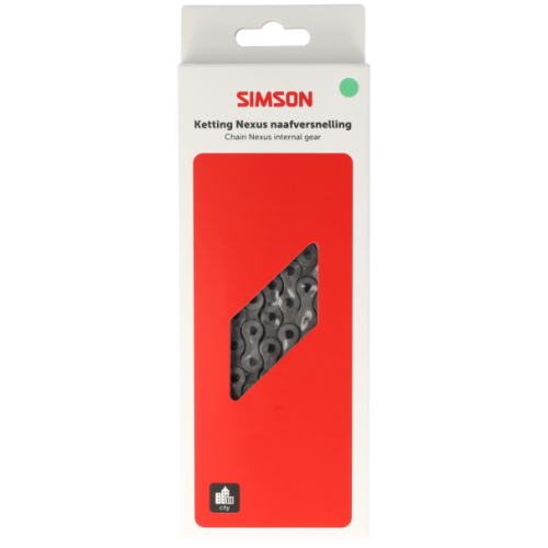 De Simson Ketting voor Nexus is een smalle fietsketting met een milieuvriendelijke anti-roest coating speciaal ontworpen voor het smalle Nexus achtertandwiel. Deze ketting heeft 112 schakels en een maat van 1/2"x 3/32".