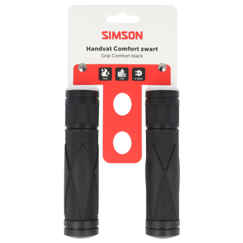 Simson Handvatten Comfort met overall gripverdeling voor optimaal comfort en extra grip onder alle omstandigheden. De handvatten zijn geschikt voor vrijwel alle fietsen met of zonder een gripshift versnelling. Voor fietsen met een gripshift versnelling kunnen de handvatten ingekort worden naar 92 mm door deze op maat af te snijden op de snijlijn.