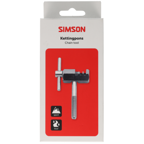 Met deze Simson kettingpons kan een fietsketting ingekort of gerepareerd worden door het pinnetje van een kettingschakel naar buiten te drukken. Verwijder met de kettingpons de overbodige schakels. Leg de ketting over de tandwielen en sluit de uiteinden van de ketting aan elkaar met een Simson verbindingsschakel.