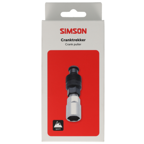 Simson Cranktrekker voor het demonteren van de crank (aan dit onderdeel zijn de pedalen gemonteerd) van de trapas. Verwijder eerst de borgmoer uit de crank. Draai hierna de cranktrekker stevig in het schroefdraad van de crank. Draai vervolgens de binnenste bout van de crank met een ring/steeksleutel richting de trapas. De crank komt zo geleidelijk los van de trapas.