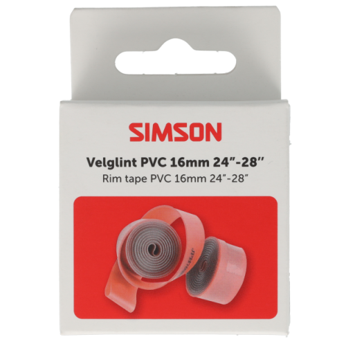 Simson Velglint 16m van extra sterk pvc beschermt de binnenband tegen lekkage veroorzaakt door de spaken. Het velglint is 16 mm breed en geschikt voor 24 tot en met 28 inch wielen. Het velglint wordt geleverd per stuk.