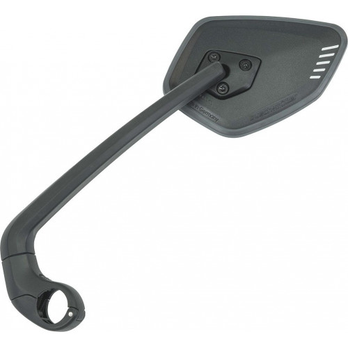 Dankzij de doordachte constructie kan hij direct op het stuur worden gemonteerd - zonder adapters - en biedt zo maximale stabiliteit en eenvoudige montage achteraf. De grote vijfhoekige kop van de spiegel zorgt met zijn gebogen, breukvaste glas voor een extra breed gezichtsveld en optimale zichtbaarheid in het wegverkeer. Een bijzonder hoogtepunt is de geïntegreerde trillingsbescherming, die zelfs bij hoge snelheden een helder en stil gezichtsveld biedt. Voor meer dagelijks comfort klapt de spiegel in één beweging in, bijvoorbeeld als de fiets geparkeerd staat. Dankzij de drie stopposities met geheugenfunctie keert de spiegel na het parkeren snel terug naar de exacte rijpositie.