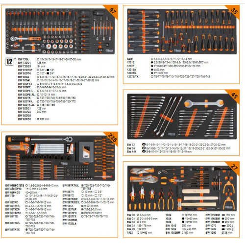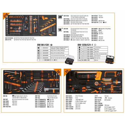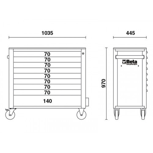De gereedschapswagens van Beta ken je mogelijk al van hun Beta-Easy lijn. Daar hebben ze nu het Beta Worker assortiment aan toegevoegd wat is ontwikkeld om meer te voldoen aan de eisen van de professional. Deze gereedschapswagen 9 laden, waarvan acht zijn voorzien van een inlay met gereedschap. Je krijgt bij de wagen meerdere dop- en steeksleutels, schroevendraaiers, doppen, bits, ratels, tangen, hamers, vijlen in diverse maten en uitvoeringen.