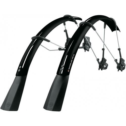 De SKS Raceblade Pro XL Spatbordset biedt uitstekende bescherming voor wielrenners, met een breder en langer ontwerp voor extra bescherming. Het superlichte, slagvaste kunststof spatbord is uitgerust met een lange spoiler en een snel te installeren Quick Release-bevestigingssysteem dat geschikt is voor Aero-vorken en -frames. De spatbordstangen zijn verstelbaar voor verschillende wielmaten, en de set bevat een plakfolie ter bescherming tegen krassen, evenals slijtvaste TPU-framebeschermingsfolie. Geschikt voor schijfremmen.