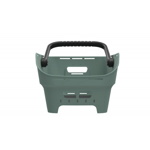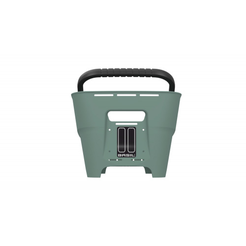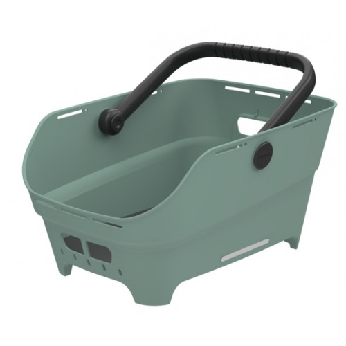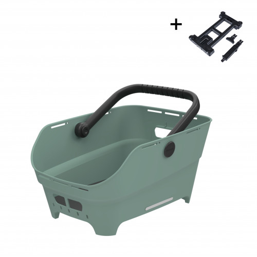 Achtermand, MIK systeemdragers/dragerplaten, incl. voorgemont. MIK Adapterplate 2.0 (70173), 46×35×25 cm, 1,5 kg, gerecycled kunststof, afgeschuind, in lengterichting op bagagedrager, afneembare bagageband, reflectie, zilvergroen