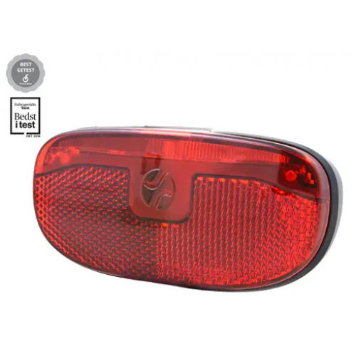 Het DUXO achterlicht is uitgerust met de Light Line Technologie©. Deze verspreidt het licht van slechts 1 LED via een speciaal gevormde lichtlijn. Dit is voldoende voor een licht opbrengst van 5 Candela. Hiermee ben je zichtbaar tot maar liefst 400 meter. Samen met de grote reflector, biedt dit achterlicht optimale veiligheid op de weg. Je bent goed zichtbaar vanaf de achterkant en vanaf de zijkanten.