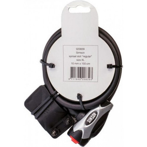 Het Simson Kabelslot Regular XL is een soepel mat zwart kabelslot. Met een dikte van 10mm en een lengte van maar liefst 150cm is het slot toch makkelijk en compact mee te nemen. Het slot wordt geleverd inclusief bevestiging voor aan de fiets, en twee sleutels.